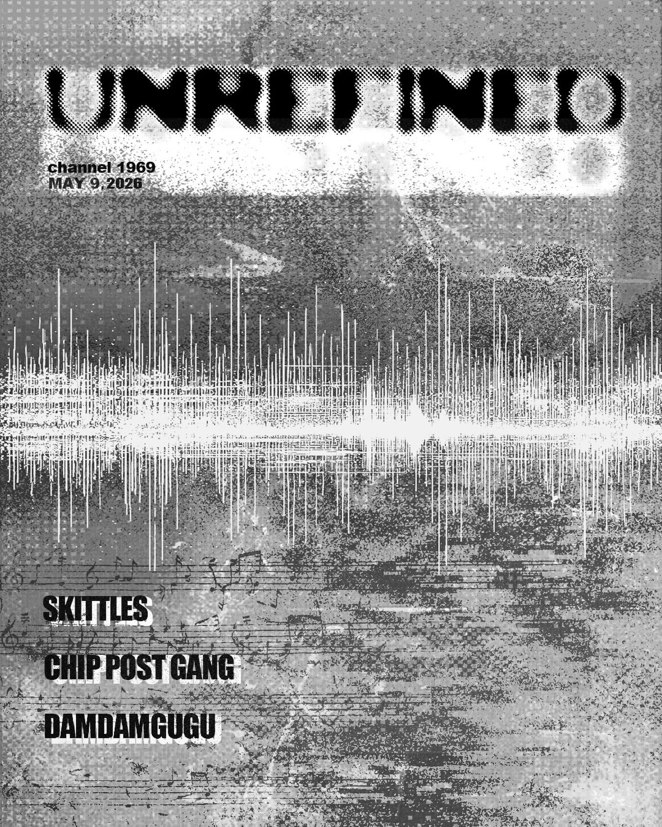 2026년 5월 9일에 SKITTLES, CHIP POST GANG, DAMDAMGUGU가 출연하는 UNREFINED 라이브 공연 포스터입니다.